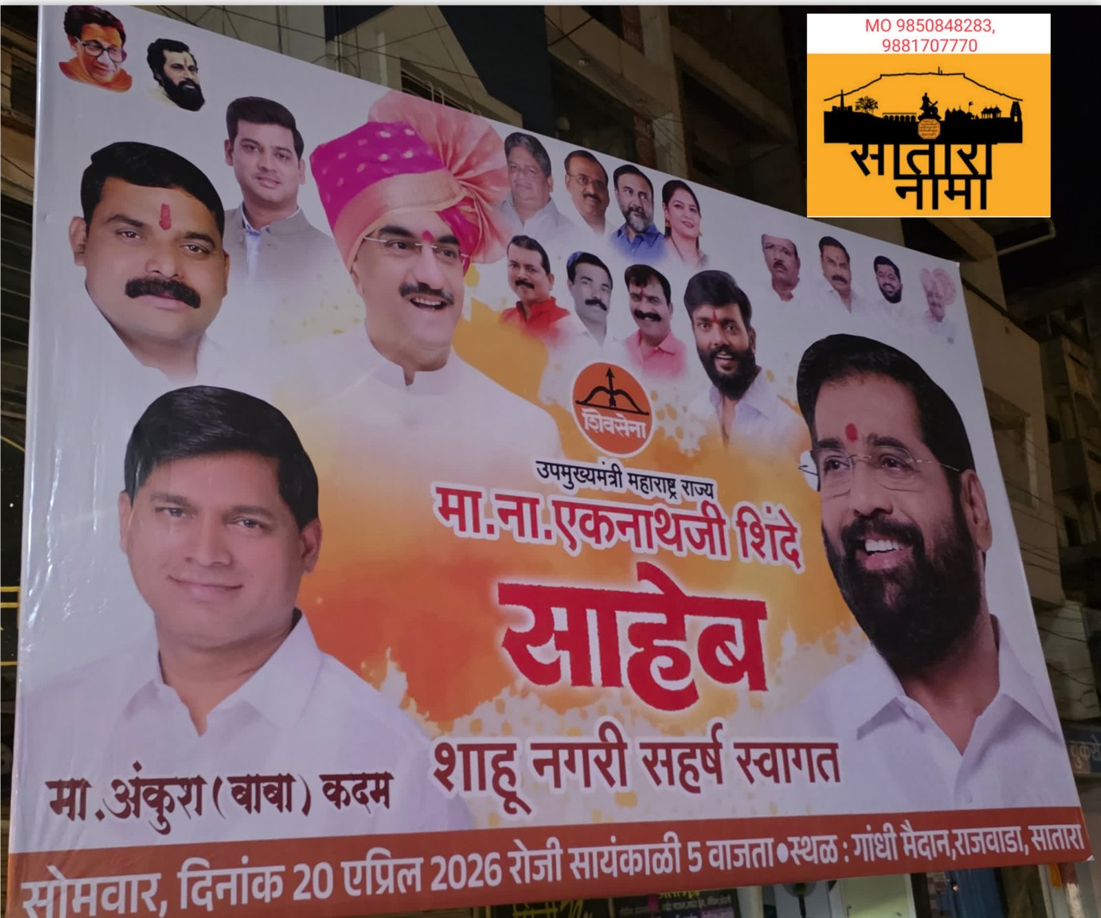 एक उपमुख्यमंत्री एकनाथ शिंदे यांच्या दौऱ्या अगोदर सातारा शहरात फ्लेक्स बाजीला ऊत आले असून या फ्लेक्स वरून कोरेगावचे शिवसेना आमदार महेश शिंदे व शिवसेना सातारा शहर प्रमुख निलेश मोरे यांना जाणून बुजून डावले असल्याचे स्पष्टपणे दिसून येते