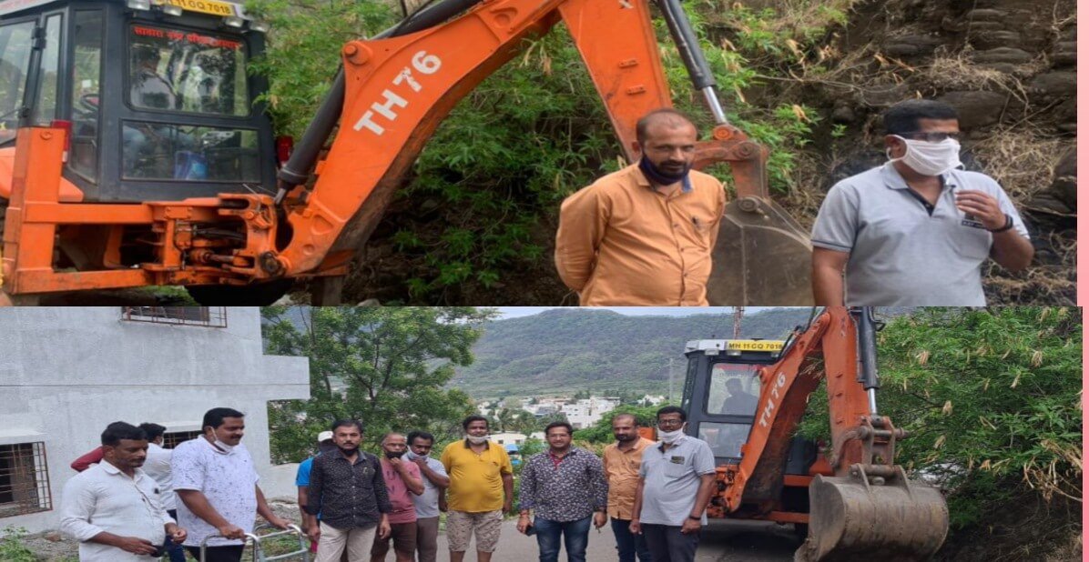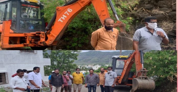 हिलटॉप कॉलनी येथील पावसाच्या पाण्याने होणारे नुकसान उपनगराध्यक्ष शेंडे यांनी थांबवले पावसाच्या पाण्याने दगड माती कचरा डोंगर भागातून वाहून येत होता स्वतःजातीने हजर राहून शेंडे यांनी येथील काम मार्गी लावल्याने येथील नागरिकांनी उपनगराध्यक्ष मनोज शेंडे यांचे आभार मानले
