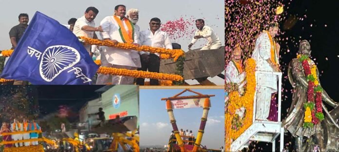 सातारा लोकसभा मतदारसंघांमध्ये महायुतीचे अधिकृत उमेदवारी मिळावी.यासाठी श्री छ खा उदयनराजे भोसले व त्यांचे हितचिंतक यांनी दिल्लीमध्ये यशस्वी बोलणी केल्यानंतर सातारा या आपल्या हक्काच्या होम पिचवर आगमन झाले. त्यांच्या स्वागतासाठी कष्टकरी,शेतकरी तसेच सर्वपक्षीय नारा देणारे कार्यकर्ते आवर्जून उपस्थित होते.भूमाता दिंडीतून सातारा जिल्ह्याच्या विकासासाठी निघालेली ही दिंडी आता विशिष्ट टप्प्यावर आलेली आहे.आज शिरवळ ते सातारा येथील शिवतिर्थ वर जमलेल्या अनेक हितचिंतकांनी शुभेच्छा दिल्या. यावेळी वारकरी, पारंपरिक पद्धतीने वाद्य वाजविण्यात आली होती.