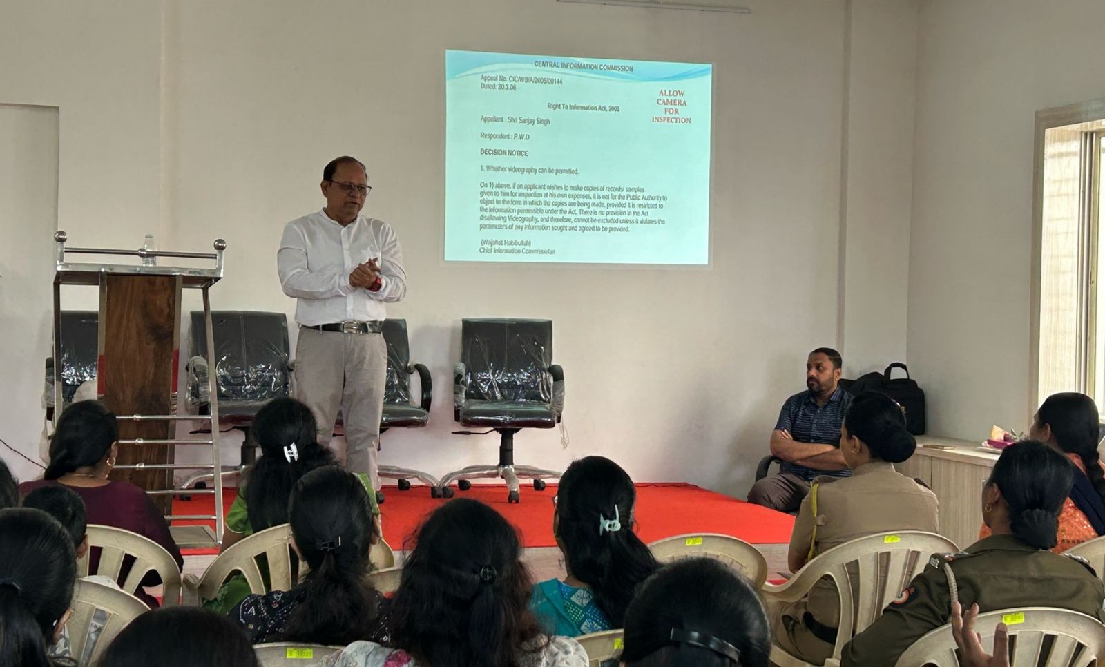 यशदाचे प्रविण प्रशिक्षक ओमकार पाटील यांनी, माहिती अधिकार अधिनियमामुळे प्रशासकीय कारभारात पारदर्शकता आणि खुलेपणा निर्माण झाला आहे. गतीमान प्रशासकीय कामकाज अधिक प्रभावी अंमलबजावणी होण्यासाठी प्रत्येक कार्यालयातील जनमाहिती अधिकारी आणि अपिलीय अधिकारी यांना अधिनियम महत्वाची कलमे, तरतुदीबाबत परिपूर्ण ज्ञान हवे, असे सांगून कायदेशीर माहिती, तरतुदी याबाबत प्रभावीपणे मार्गदर्शन केले. सहभागी महिला अधिकाऱ्यांनी उपस्थित केलेल्या अनेक शंकांचे निरसन यावेळी ओमकार पाटील यांनी केले.