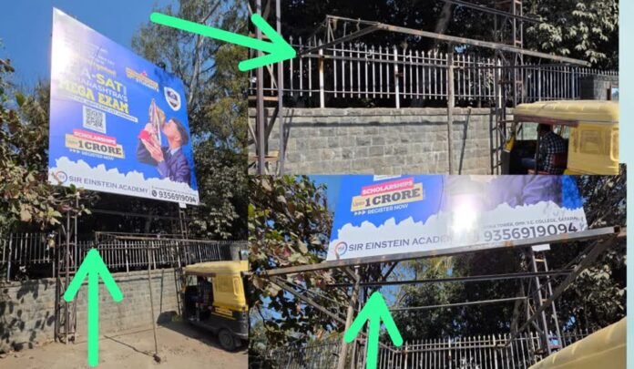 साताऱ्यात सध्या नागरिकांच्या जीवाशी खेळण्याचा प्रकार सुरू आहे तो म्हणजे मोठमोठे लोखंडी फ्लेक्स बोर्ड उभारण्याचे स्ट्रक्चर हे थोडे कमी की काय म्हणून पोवई नाक्यावरील स्ट्रक्चरच्या मधोमध अज्ञात व्यक्तिने लोखंडी चे छत करून अतिक्रमणच केल्याचा प्रकार उघडकीस येतोय