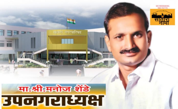 सातारा नगरपालिकेच्या उपनगराध्यक्षपदी खासदार गटाचे मनोज शेंडे यांची वर्णी लागली असून त्यांच्या निवडीची आता दिनांक बावीस रोजी होणाऱ्या सर्वसाधारण सभेत घोषणा होण्याची औपचारिकता बाकी आहे नगरसेवक मनोज शेंडे यांना उपनगराध्यक्ष पदाचा अनुभव असल्याने खासदार गटाला याचा फायदा होणार आहे .सातारा पालिकेच्या नगरसेवकांच्या संख्येला अनुसरून पाच स्वीकृत नगरसेवक सदस्य पदी नव्या चेहऱ्यांना संधी देण्यात आली आहे .
