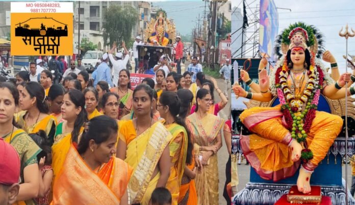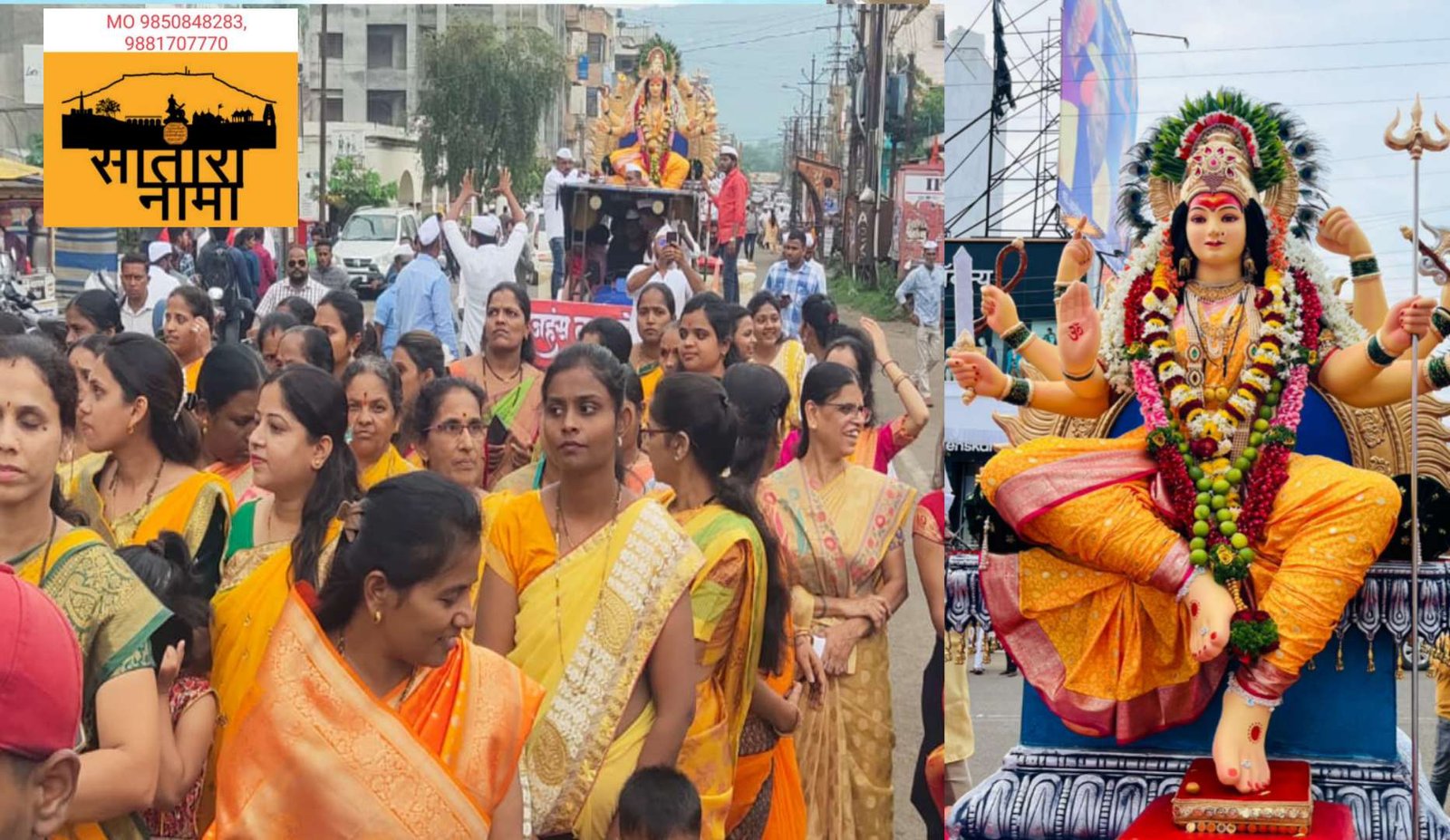 साताऱ्यातील मिरवणुकांना सकाळपासून ढोल-ताशांच्या गजरात सुरुवात झाली. कार्यकर्त्यांनी केलेल्या घोषणांनी वातावरण दुमदुमत होते. सातारा शहरातील मोती चौक, राजवाडा पंचपाळे हौद दुर्गा माता मंदिरात पहिल्या दिवशी श्रीशैलपुत्री रूपातील तसेच विविध फुलांचा साज शृंगार केलेली दुर्गादेवीची पूजा बांधण्यात आली होती. सातारा कृष्णा नगर परिसरातील श्री उत्तर चिदंबरम नटराज मंदिरातील श्री उमादेवीच्या नवरात्र उत्सवाला प्रारंभ झाला. मंदिरामध्ये पुढील नऊ दिवस विविध कार्यक्रमांचे आयोजन करण्यात आले असून त्यामध्ये धार्मिक कार्यक्रम, होम, हवन, कुमारी पूजा, सुवासिनी पूजा तसेच दीपोत्सव आणि सांस्कृतिक कार्यक्रमांमध्ये भरतनाट्यम गिटार वादन व गायन रास-दांडियाही रंगणार आदी कर्यक्रम कार्यक्रम सादर होणार आहेत.