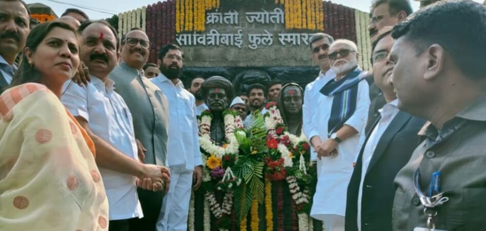सातारा दि. ३- क्रांतिज्योती सावित्रीबाई फुले यांच्या जयंतीनिमित्त त्यांचे जन्मगाव असलेल्या खंडाळा तालुक्यातील नायगाव येथील स्मारकास मुख्यमंत्री एकनाथ शिंदे यांनी पुष्पहार अर्पण करून क्रांतिज्योती सावित्रीबाई फुले यांना अभिवादन केले.