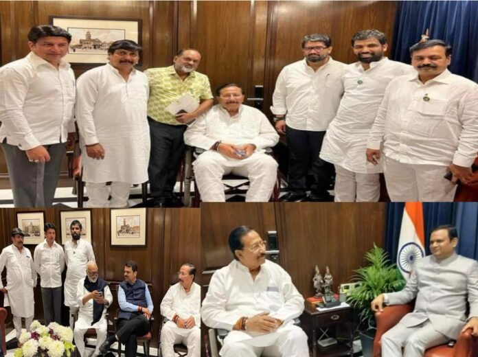 माढ्याचे खासदार रणजितसिंह नाईक निंबाळकर यांचे राजकीय विरोधक असलेले विजयसिंह मोहिते पाटील,माढ्यातून खासदारकीसाठी इच्छुक असलेले धैर्यशील मोहिते पाटील आ रणजितसिंह मोहिते पाटील,आ दीपक चव्हाण राम सातपुते माजीमंत्री महादेव जानकर यांनी आज मंत्रालयात मुख्यमंत्री उपमुख्यमंत्री,यांच्यासह श्रीमंत रामराजे नाईक निंबाळकर यांचे जावई असलेले विधानसभा अध्यक्ष राहुल नार्वेकर यांची भेट घेतल्याने राजकीय चर्चेला उधाण आल आहे