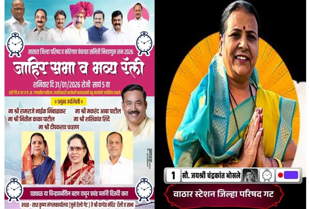 वाठार स्टेशन गटाच्या राष्ट्रवादीच्या उमेदवार जयश्री भोसले यांच्या प्रचारानिमित्त मंत्री मकरंद पाटील माजी विधान परिषद सभापती रामराजे नाईक निंबाळकर प्रदेशाध्यक्ष शशिकांत शिंदे राज्यसभा खासदार नितीन पाटील या दिग्गज नेत्यांची सभा होणार आहे