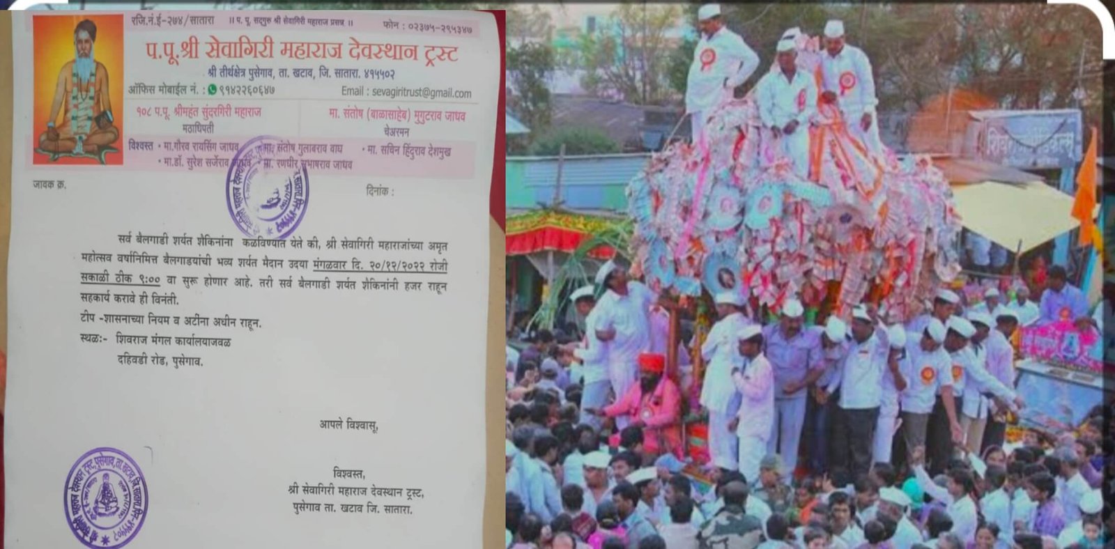 पुसेगाव यात्रेनिमित्त उद्याच बैलगाड्या शर्यत होणार असल्याची माहिती श्री सेवागिरी महाराज देवस्थान ट्रस्टच्या वतीने देण्यात आली आहे