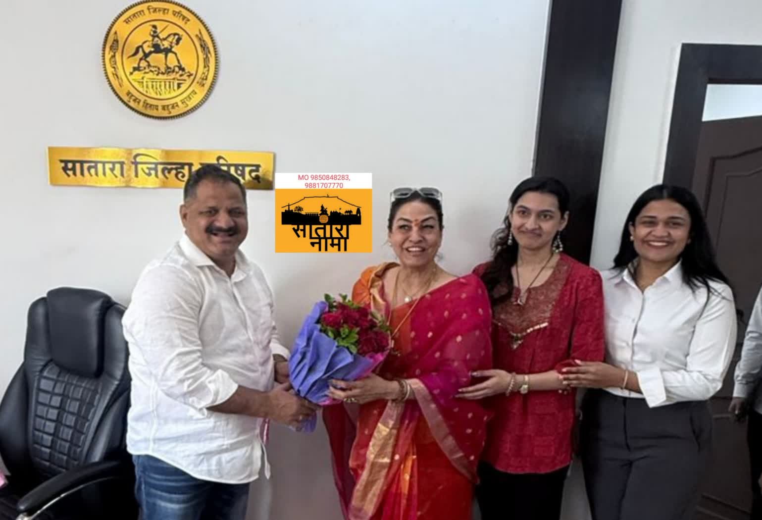 अजित पवार गटाच्या नेत्या माजी जिल्हा परिषद अध्यक्ष श्रीमंत गायत्रीदेवी पंतप्रतिनिधी यांनी जिल्हा परिषदेत भाजपचे जिल्हा परिषद उपाध्यक्ष राजू भोसले यांची भेट घेऊन त्यांना शुभेच्छा दिल्या